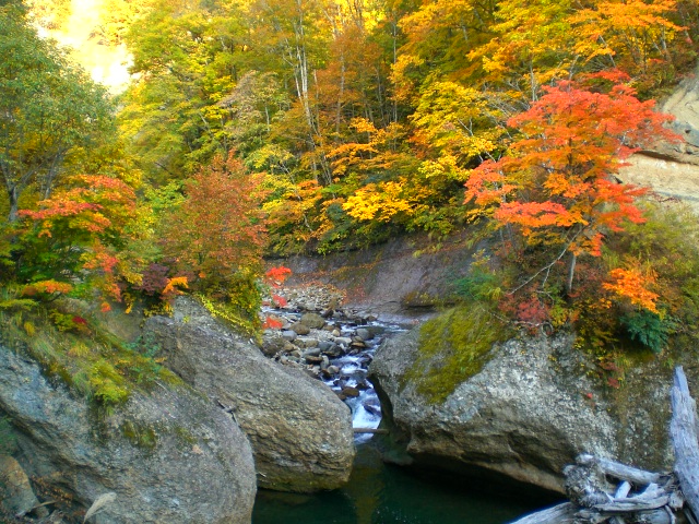 秋の奥裾花渓谷、奥裾花自然園の様子