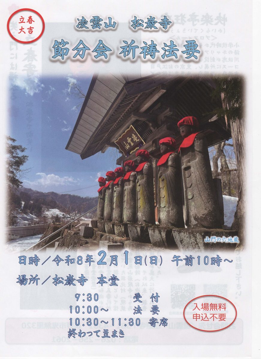 【凌雲山 松巌寺】2月1日(日)節分会、祈祷法要